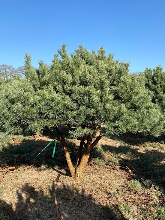 Eigenschaften: | Strauch-Wald-Kiefer Schirmform / Pinus sylvestris 'Watereri' 250 cm breit x 225 cm hoch ist eine malerische, kleinwüchsige Kiefer, die extrem frosthart, windfest und stadtklimafest ist. Sie ist problemlos im heimischen Garten unterzubringen. Grade als mehrstämmige Schirmform eine wirkliche Seltenheit. |