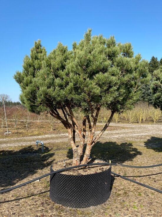 Eigenschaften: | Strauch-Wald-Kiefer Schirmform / Pinus sylvestris 'Watereri' 250 cm breit x 225 cm hoch ist eine malerische, kleinwüchsige Kiefer, die extrem frosthart, windfest und stadtklimafest ist. Sie ist problemlos im heimischen Garten unterzubringen. Grade als mehrstämmige Schirmform eine wirkliche Seltenheit.. |