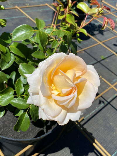 Eigenschaften: | Die Edelrose 'Ambiente' überzeugt mit stark gefüllten, cremeweißen Blüten mit zart cremegelber Mitte und einem dezenten, blumigen Duft. Sie ist besonders blühfreudig, langblühend und sehr haltbar, weshalb sie sich auch gut als Schnittrose und für die Kübelpflanzung eignet. Der Wuchs ist buschig mit glänzendem, gesundem Laub, das im Austrieb rötlich gefärbt ist. 'Ambiente' bevorzugt einen sonnigen bis halbschattigen Standort auf lockerem, humosem und nährstoffreichem Boden mit neutralem bis schwach saurem pH-Wert.. |