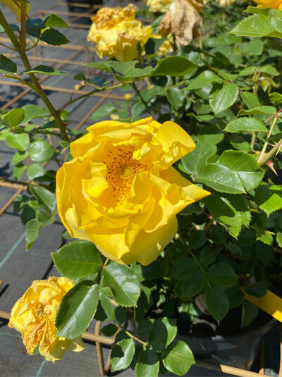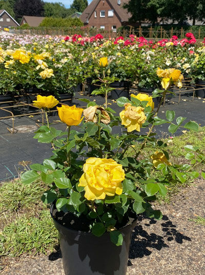 | Eigenschaften: | Die Beetrose 'Here comes the Sun' ® begeistert mit ihren intensiv gelben, duftenden Blüten, die an kleine Sonnen erinnern und von Bienen geschätzt werden. Ihre hohe Hitzetoleranz macht sie perfekt für sonnige Gärten und Balkone. Mit ausgezeichneter Blattgesundheit und Pflegeleichtigkeit eignet sie sich für viele Einsatzorte – sei es im Gartenbeet, Kübel auf der Terrasse oder als Teil einer Grabbepflanzung. Ein farbstarker Blickfang, der auch intensiver Sonneneinstrahlung standhält. |