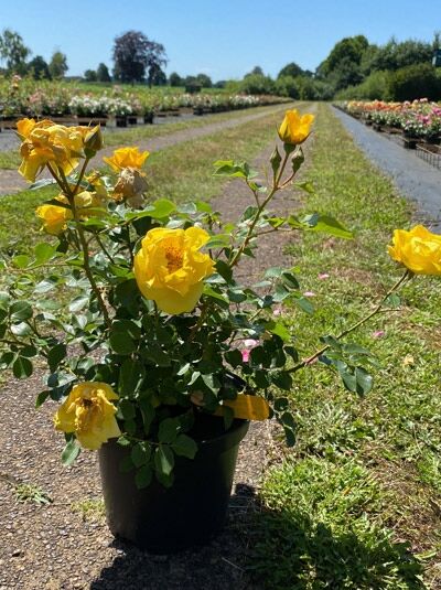 Die Beetrose 'Here comes the Sun' ® begeistert mit ihren intensiv gelben, duftenden Blüten, die an kleine Sonnen erinnern und von Bienen geschätzt werden. Ihre hohe Hitzetoleranz macht sie perfekt...