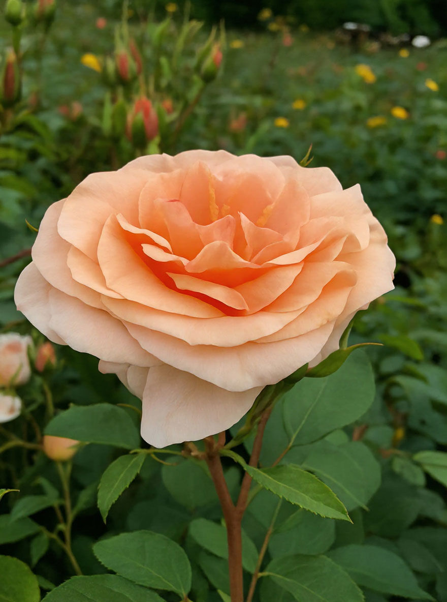 | Blüte: | Apricot, gut gefüllt, edel, zart duftend |