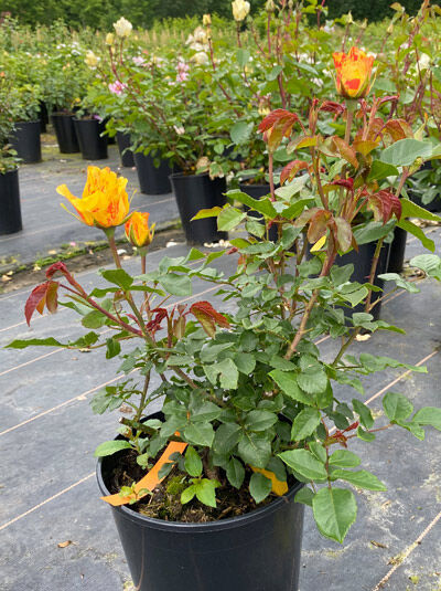 Die Beetrose 'Lollipop' ® ist eine robuste und gesunde Neuheit von 2023, die mit ihren halbgefüllten Blüten in leuchtendem Orange und Gelb den Garten von Juni bis Oktober erhellt. Mit einer...