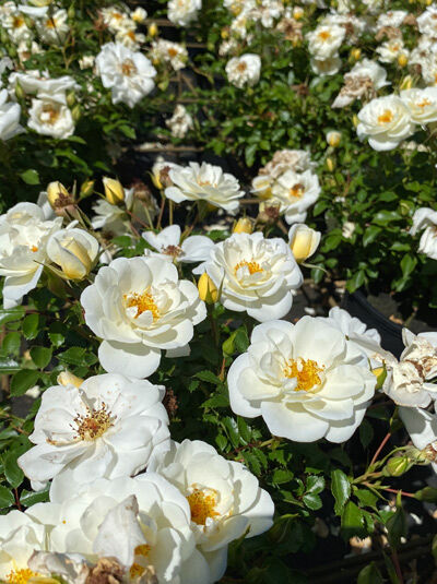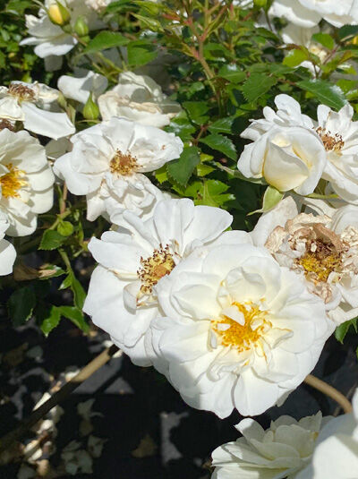 Die Bodendecker-Rose Bienenweide® Ivory bezaubert mit zart elfenbeinfarbenen, leicht gefüllten Blüten, die in Büscheln erscheinen und 2–4 cm groß werden. Ihr offenes Blütenzentrum macht sie...