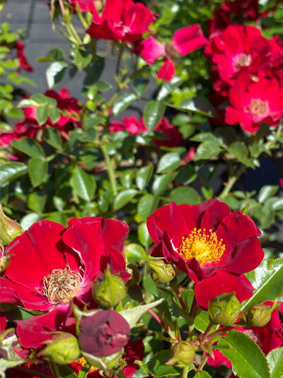Eigenschaften: Die Bodendecker-Rose Bienenweide® Rot begeistert mit einfachen, dunkelroten Blüten und leuchtend gelbem Auge – ein Magnet für Bienen, Hummeln und Schmetterlinge. Ihr glänzend dunkelgrünes Laub bildet einen starken Kontrast zur farbintensiven Blüte. Sie blüht ab Juni reich und zuverlässig, ist winterhart, hitze- wie kälteresistent und überzeugt mit gesunder, robuster Wuchsform. Ideal für Beete, Rabatten und Kübel – selbst in halbschattigen Lagen blühfreudig und pflegeleicht.
