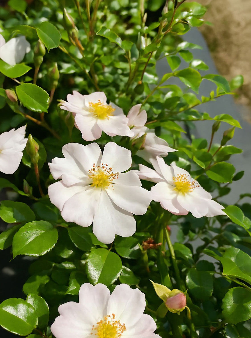 | Eigenschaften: | Die Bodendecker-Rose Medeo® fügt sich harmonisch in Gärten ein und kombiniert perfekt mit Edelrosen und Stauden. Sie verschönert Flächen zwischen Bäumen und Sträuchern und eignet sich hervorragend für die Bepflanzung von Kübeln auf Balkon oder Terrasse. Mit ihrem dezenten, lieblichen Duft und den kleinen weißen Blüten, die einen zarten rosafarbenen Schimmer tragen, zieht sie zahlreiche Insekten an. Medeo® ist äußerst hitzebeständig und kommt auch in städtischen Umgebungen oder in der Nähe von Straßen gut zurecht. |
