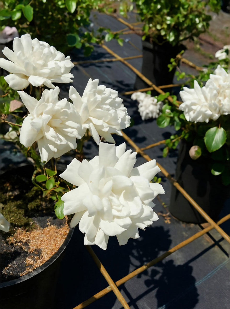 | Blüte: | Weiß. stark gefüllt, nostalgisch, öfter blühend, schalenförmig |