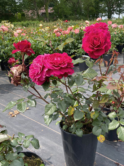 Eigenschaften: Die Edelrose Bellevue® überzeugt mit purpurroten, edel geformten Blüten und zartem Duft. Sie blüht zuverlässig von Mai bis zum Frost und wächst kompakt auf etwa 90 cm Höhe. Die Sorte stammt aus dem Hause Kordes und wurde 2015 in Baden-Baden getauft. Ihre Blüten erscheinen in elegantem Farbspiel, sind bis zu 10 cm groß und machen Bellevue® zu einem Blickfang im Rosenbeet oder als Schnittblume in der Vase. Die Pflanze zeigt sich robust, gleichmäßig im Wuchs und sehr blühfreudig..