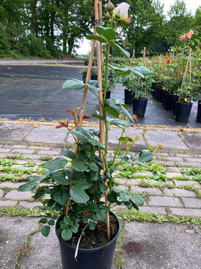 | Blüte: | Creme - weiß, halbgefüllt, öfter blühend, duftend. |