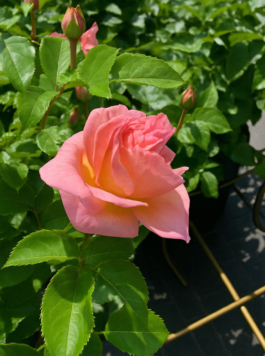 | Eigenschaften: | Die Edelrose 'Dornburger Schlossrose'® beeindruckt mit ihrem eleganten Blütenflor, der ihr 2021 die Goldmedaille in Baden-Baden und 2022 das ADR-Gütezeichen einbrachte. Ihre schalenförmigen, anmutig gefüllten Blüten erreichen einen Durchmesser von 8–10 cm und präsentieren sich in romantischen Pastelltönen von zartem Gelb bis intensivem Rosa. Diese Rosen blühen unermüdlich von Juni bis Herbst und verströmen einen angenehmen Duft. Mit ihrem kräftigen, mittelgrünen Laub wächst sie buschig und erreicht eine Höhe von 90–120 cm. Die 'Dornburger Schlossrose'® gedeiht an sonnigen Standorten auf durchlässigem Boden und ist äußerst pflegeleicht sowie winterhart.. |