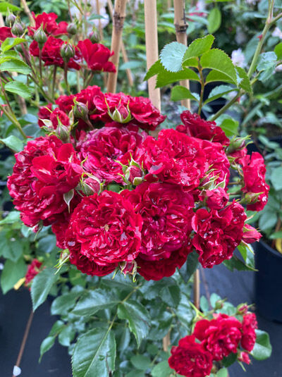 | Eigenschaften: | Die Miniclimber-Rose begeistert mit voll gefüllten Blüten in kräftigen Karmin- und Purpurrot-Tönen, die zusammen mit den sichtbaren gelben Staubgefäßen einen lebendigen Kontrast bilden. Diese prächtigen Blüten locken nicht nur uns, sondern auch Bienen, Hummeln und Schmetterlinge an. Bis zu 4 cm groß, erscheinen die Blüten in reichen Dolden und erfreuen den Garten über lange Sommermonate hinweg, oft bis zum ersten Frost im November.. |