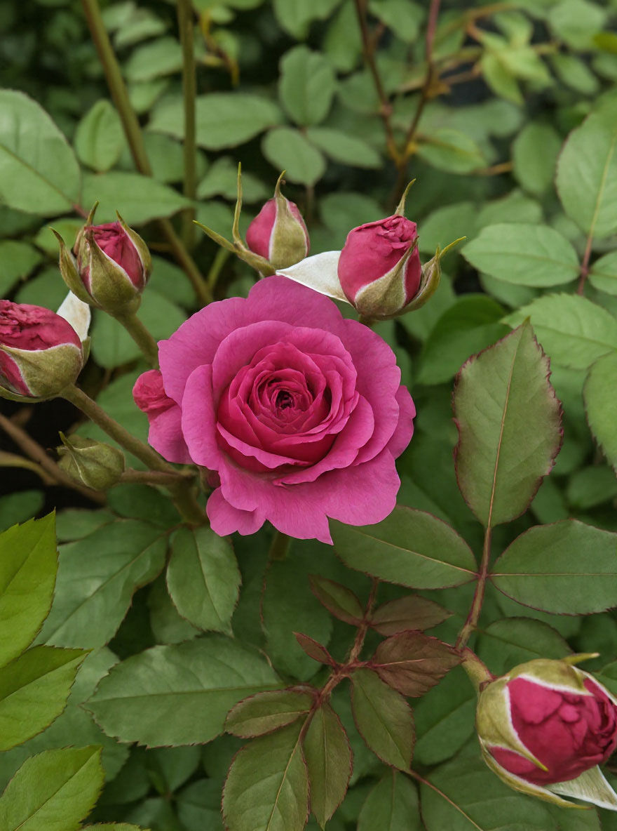 | Blüte: | Dunkelrosa, dicht gfüllt, duftend, öfter blühend. |