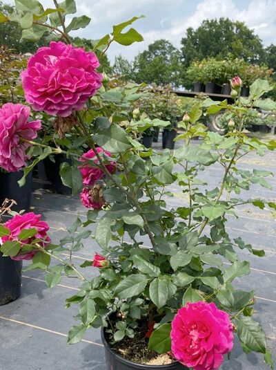 Die Englische Rose 'Gabriel Oak' besticht mit ihren nostalgisch gefüllten Blüten in sattem Dunkelrosa und Magentarosa, die bis zu 12 Zentimeter groß werden. Diese Blüten, die auf violetten...
