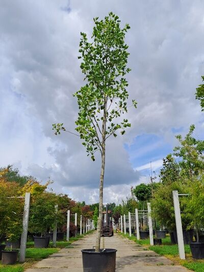 Liriodendron tulipifera ’Aureomarginatum‘ wächst mit einer ovalen Krone und wird bis zu 20m hoch
