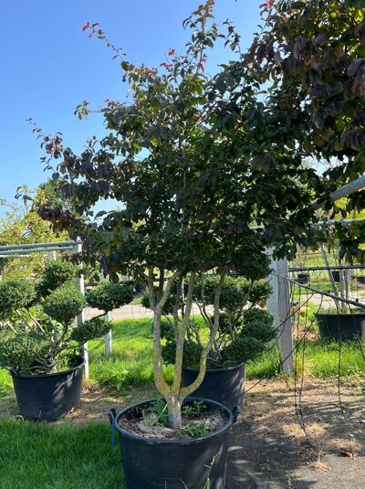 Wuchs: | Großer Strauch bis kleiner Baum, oft Schirmform, aufrecht, weit ausladend, 6 bis 12 m hoch und ebenso breit |