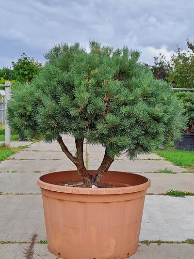 Eigenschaften: | Pinus sylvestris 'Watereri' Breit 140 cm x Hoch 120 cm (Nr. 1158) / Strauch-Wald-Kiefer (Schirmform)ist eine malerische, kleinwüchsige Kiefer, die extrem frosthart, windfest und stadtklimafest ist. Sie ist problemlos im heimischen Garten unterzubringen. Grade als mehrstämmige Schirmform eine wirkliche Seltenheit. |