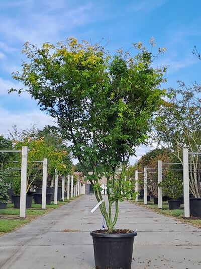 Wuchs: | Kleiner Strauch, baumartig aufrecht und meist mehrstämmig, dicht verzweigt, überhängende Zweige, rundliche Krone, wird ca. 3-4 m hoch |