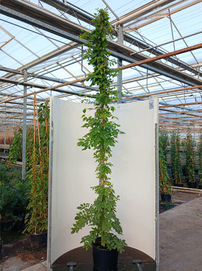 Wuchs: Starkwüchsige und hochwindende Kletterpflanze, bis zu 8 m hoch und 6 m breit