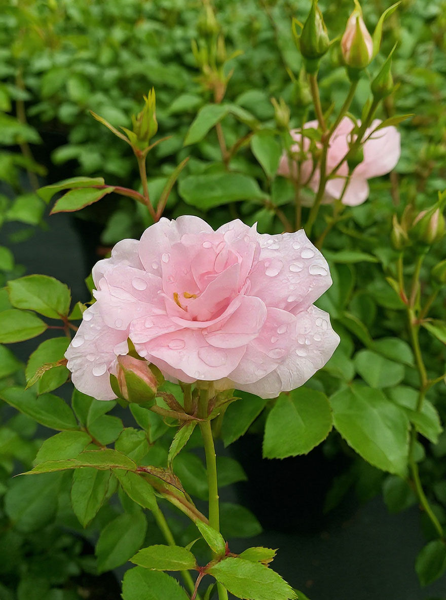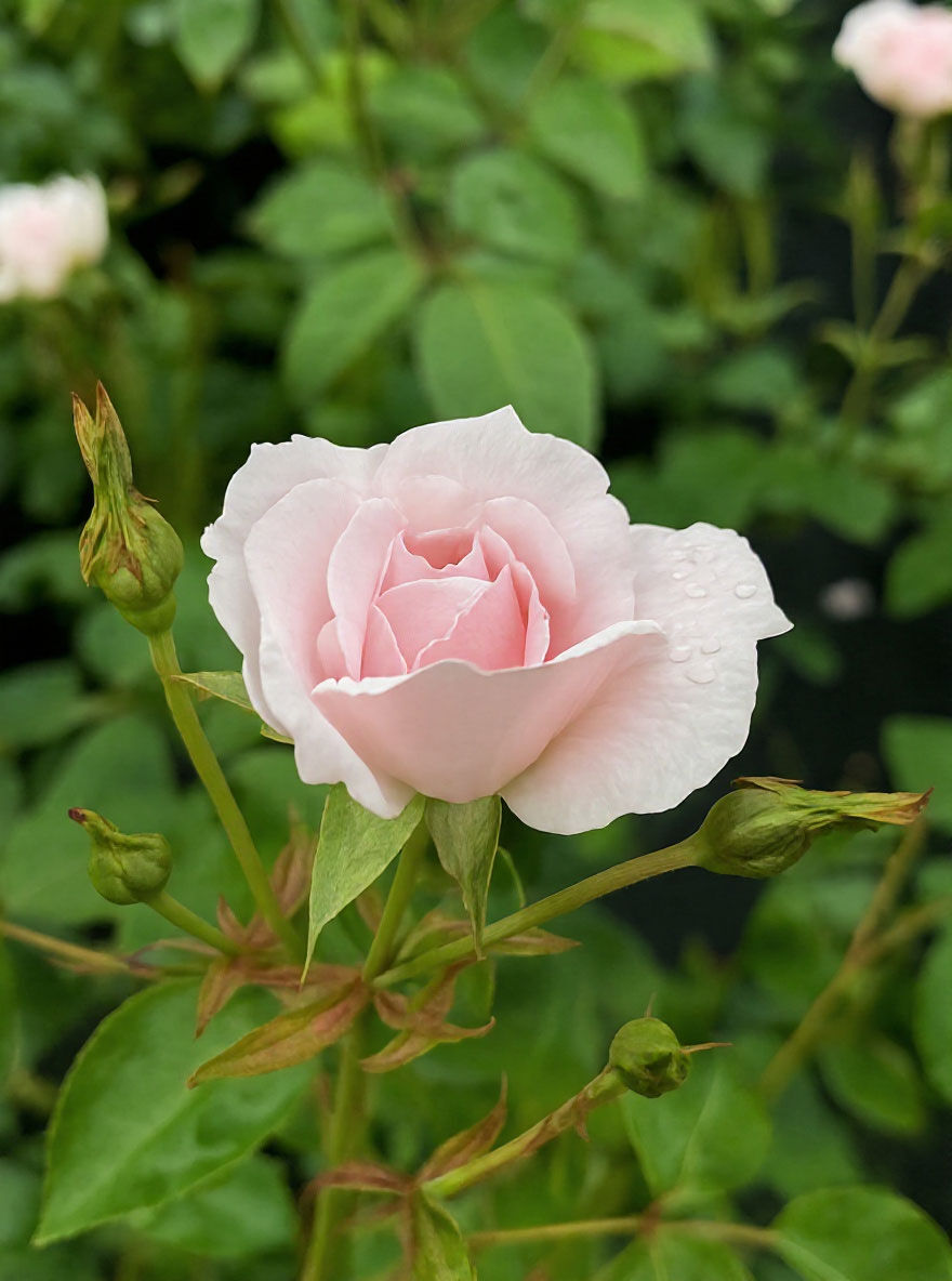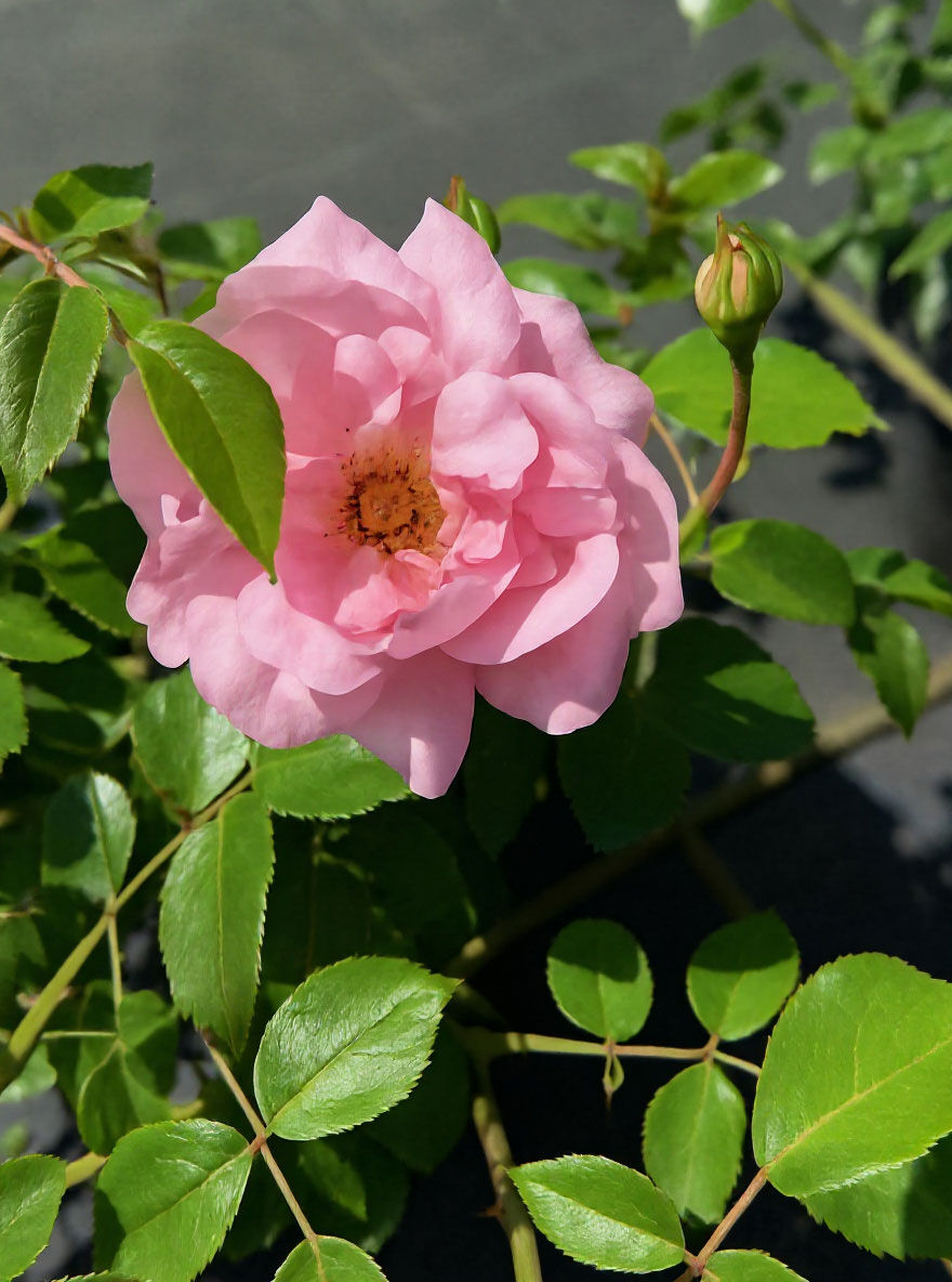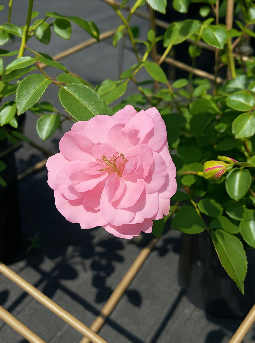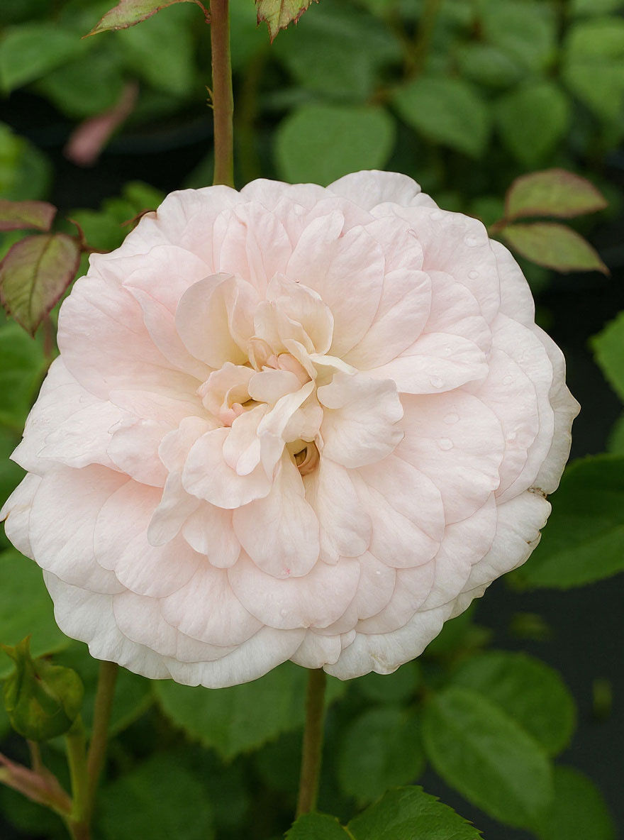 | Blüte: | Hellrosa, locker gefüllt, lieblich duftend, bis zu 10 cm groß |