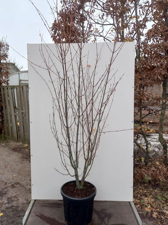 | Rinde: | Grünliche Rinde, die von weißen Längsstreifen durchzogen ist, Jungtriebe dunkelrot |