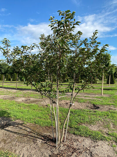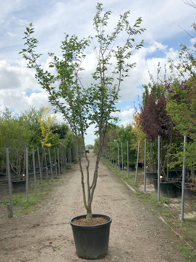 Wuchs: | Großstrauch oder kleiner Baum, zierlich, trichterförmig aufrecht, locker gestellte Hauptäste, im Alter schirmförmig mit leicht überhängenden Ästen, 5 bis 10 m hoch und 3 bis 10 m breit. |