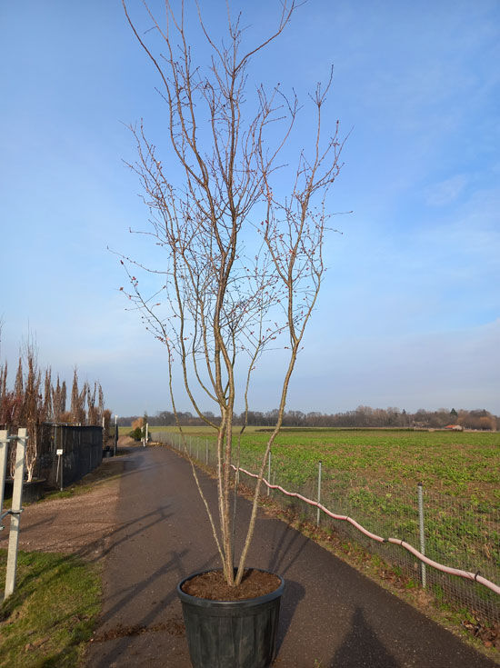 Wuchs: | Großstrauch oder kleiner Baum, zierlich, trichterförmig aufrecht, locker gestellte Hauptäste, im Alter schirmförmig mit leicht überhängenden Ästen, 5 bis 10 m hoch und 3 bis 10 m breit |