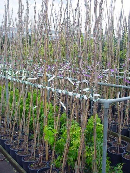Wuchs: Kletterpflanze, gut verzweigt, starkwüchsig, rechtswindend, 6 bis 9 m hoch und 4 bis 6 m breit