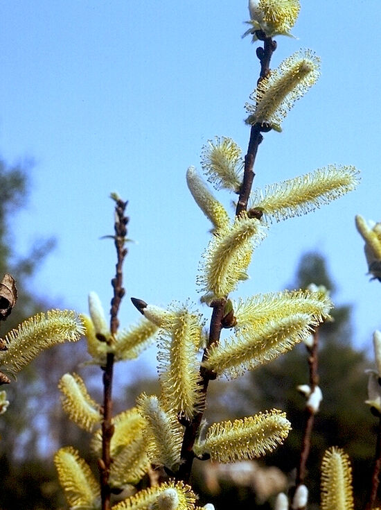| Blüte: | Kätzchenblüten, silberweiß bis gelbweiß, unscheinbar, dezent duftend |