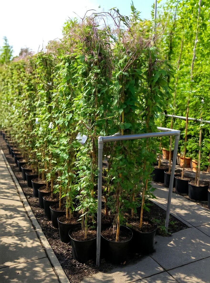 | Wuchs: | Kletterpflanze, aufrecht, gut verzweigt, buschig, sehr wüchsig, 5 bis 8 m hoch |