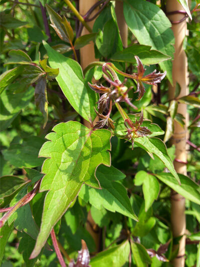 | Wuchs: | Kletterpflanze, aufrecht, gut verzweigt, buschig, sehr wüchsig, 5 bis 8 m hoch. |