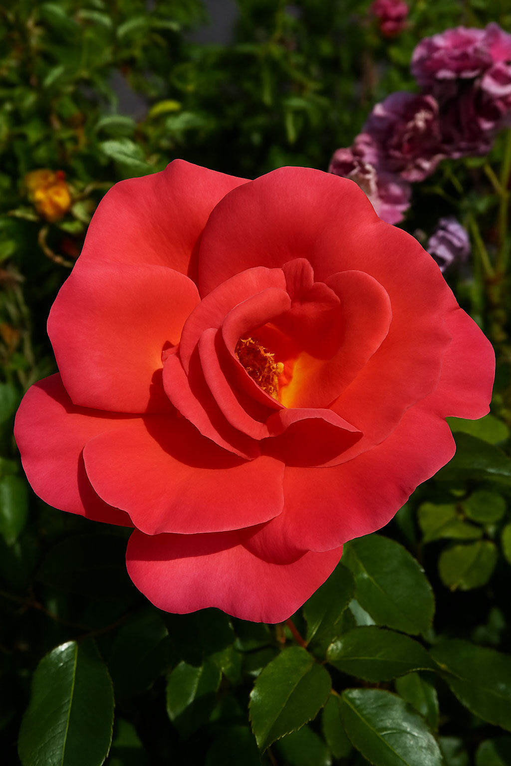 | Blüte: | Orangegelb bis orangerot, im Verblühen zartrosa, halbgefüllt, leichter Duft, mittelgroß, 5 bis 10 cm breit |