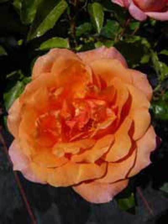 | Blüte: | Leuchtend kupferfarben bis apricotfarben, gefüllt, kräftig fruchtiger Duft, reichblühend, 8 bis 10 cm groß |