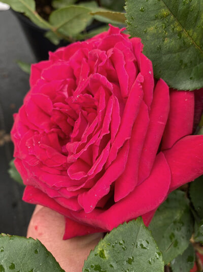 | Blüte: | Volles rot, gut gefüllt, in der Mitte gedreht, angenehm duftend, 9 bis 11 cm groß |