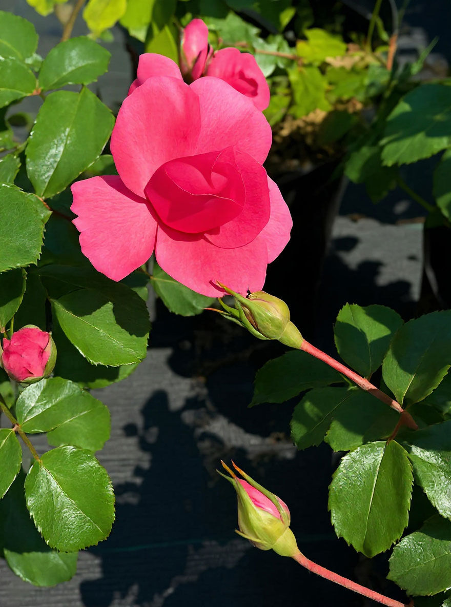 Die Rosa 'Mirato ®' (Bodendeckerrose 'Mirato') erweist sich als gesunde, robuste und frostharte Rose. Ein tolles Zierelement, das mit den leuchtend rosa bis pinken Blüten ansprechende Akzente in...