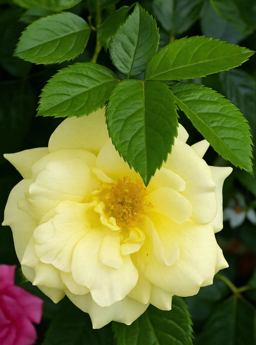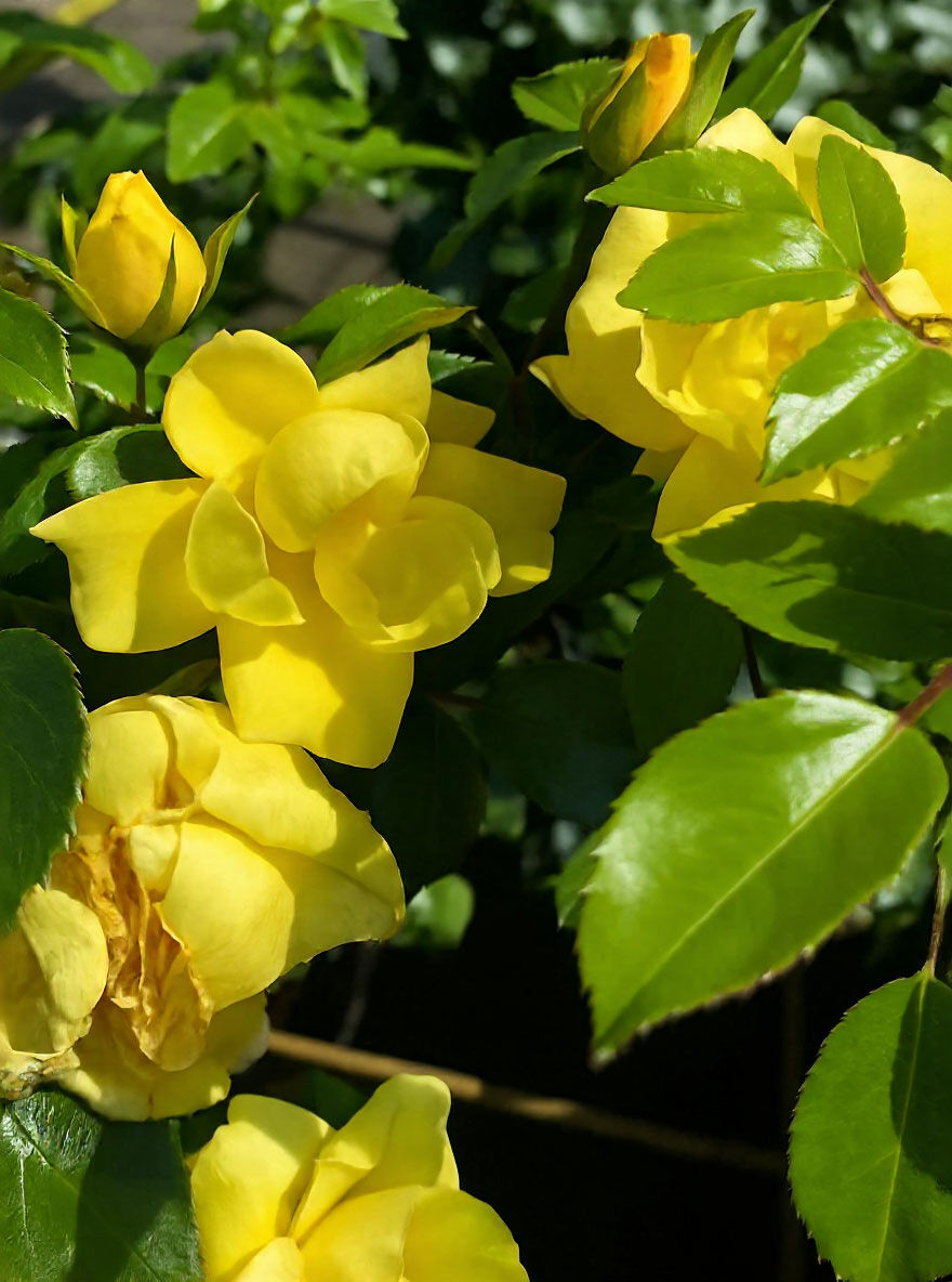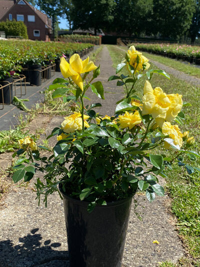 | Blüte: | Leuchtend gelb, halbgefüllt, in Dolden stehend, leicht duftend, öfterblühend, 5 bis 10 cm groß |