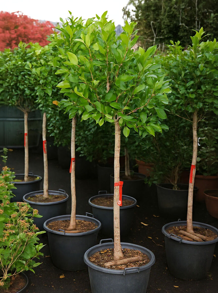 Japanische Kamelie rosa (Camellia japonica) 120 cm Stamm im C50-Topf, Hochstamm mit grünem Laub in Baumschulcontainer