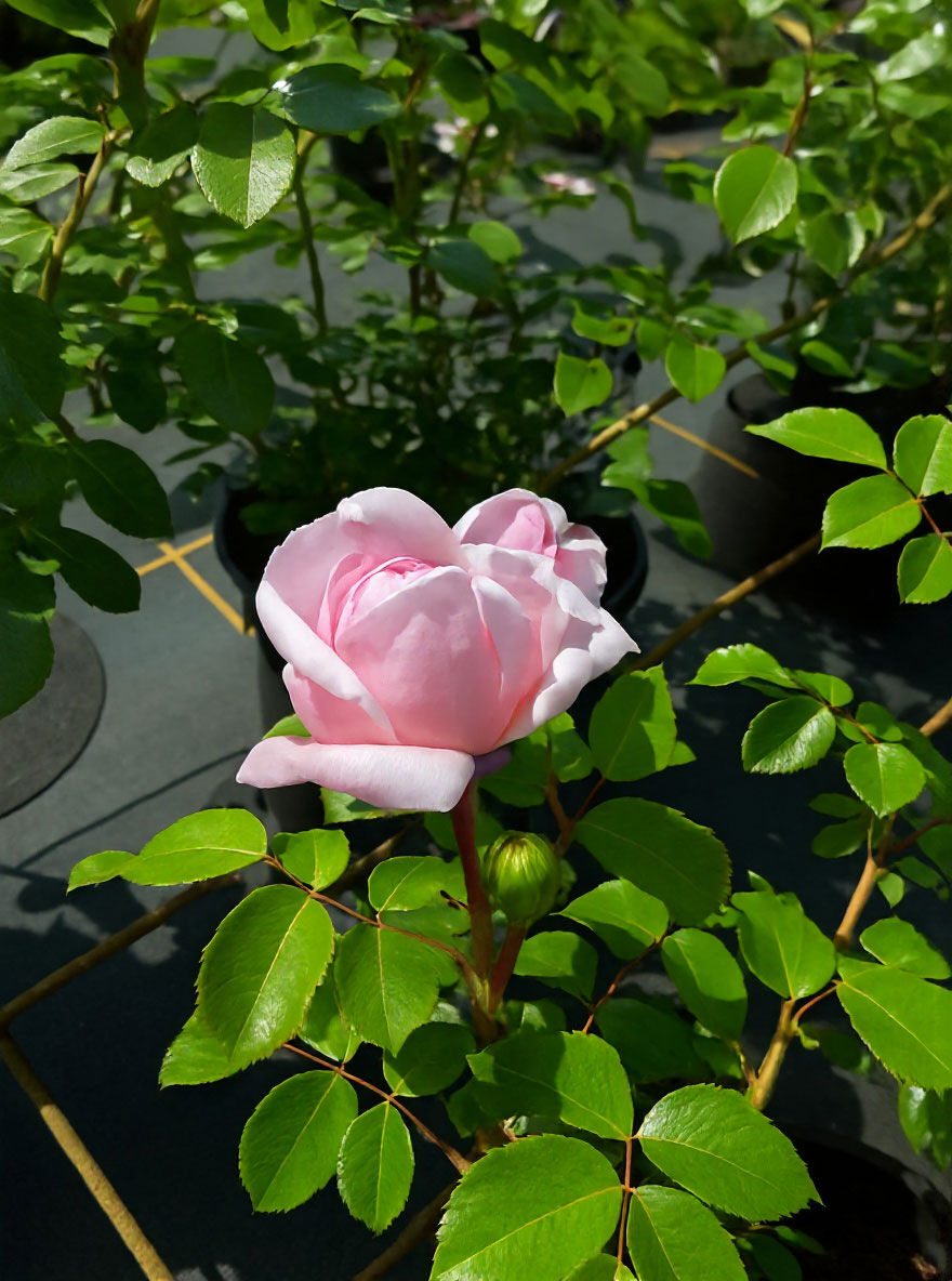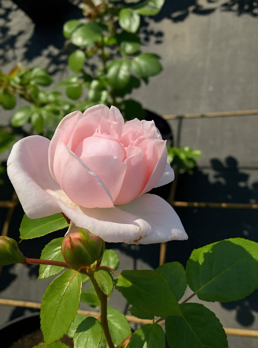 | Blüte: | Zartrosa, gefüllt, nostalgisch geformt, starker Apfelduft, reich- und öfterblühend, 8 bis 10 cm groß |