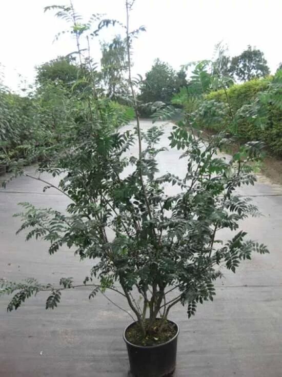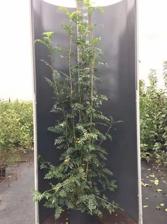 Blatt: | Sommergrün, unpaarig gefiedert, 9 bis 17 Teilblättchen, grob gesägter Rand, matt dunkelgrün, Herbstfärbung gelb bis orangerot, bis zu 20 cm lang. |
