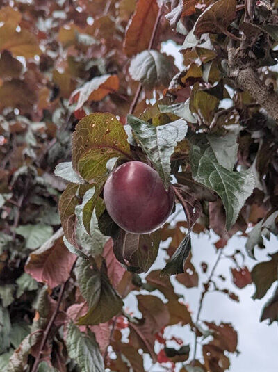 Frucht: | Dunkelrote Pflaumen, saftig, süß schmeckend, ca. 3 cm dick |
