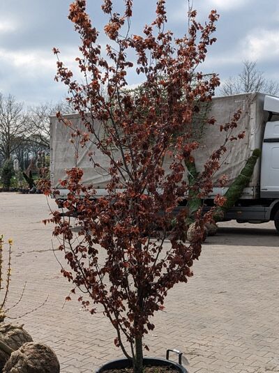 Dieser charismatische Zierbaum ist ein wunderschöner Blickfang, der mit einem strahlend roten Blattwerk sensationelle Gartenmomente beschert. Die Blutpflaume bringt ganzjährig Farbe und Exotik in den Garten und weiß sich mit ihrer Ausstrahlung bestmöglich zu präsentieren. Das Laub leuchtet in einem wunderschönen Rotton, der Stamm und die bedornte Rinde sind ein echter Hingucker und nicht zuletzt macht eine traumhafte Blüte diese Züchtung zu einer echten Schönheit. Sie eignet sich aufgrund ihrer Größe perfekt für den privaten Hausgarten und kann sich selbst auf kleinerem Raum bestmöglich entwickeln. Es empfiehlt sich, der Schönheit einen solitären Stand zu gönnen, wo sie am prächtigsten zur Geltung kommt. Aber auch inmitten einer Rabatte oder integriert in eine Pflasterfläche ist die Prunus cerasifera ’Nigra‘ ein echtes Highlight und bringt fernöstliches Flair in den heimischen Garten.