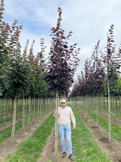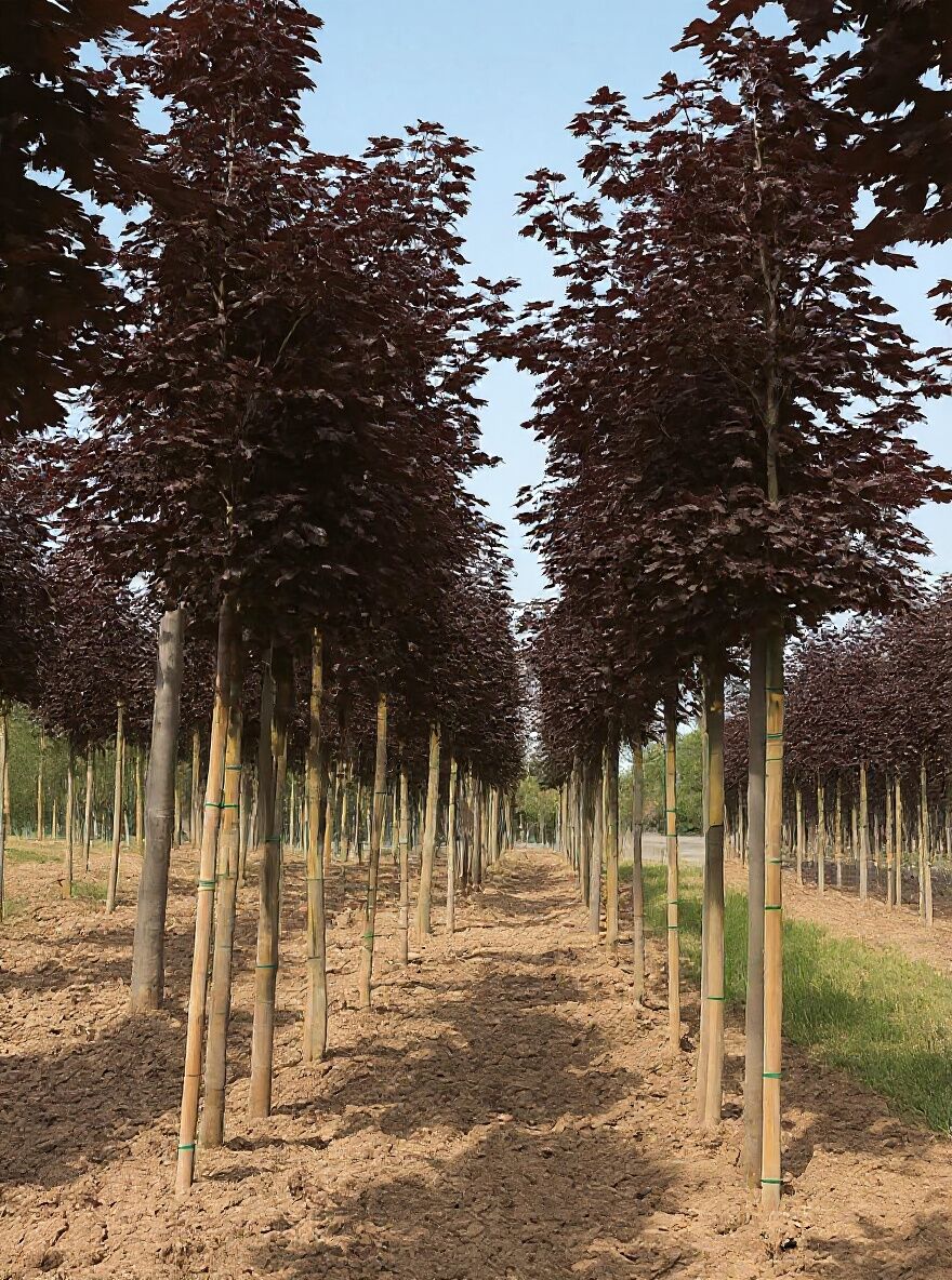 hervorragendem Zustand geliefert: gut durchwurzelt, sauber aufgebaut und mit einem satten, gesunden Rot im Laub. Er ist schnell angewachsen und zeigt eine erstaunlich stabile, gleichmäßige Krone. Die Farbe bleibt den ganzen Sommer über intensiv und macht den Baum zu einem echten Blickfang.