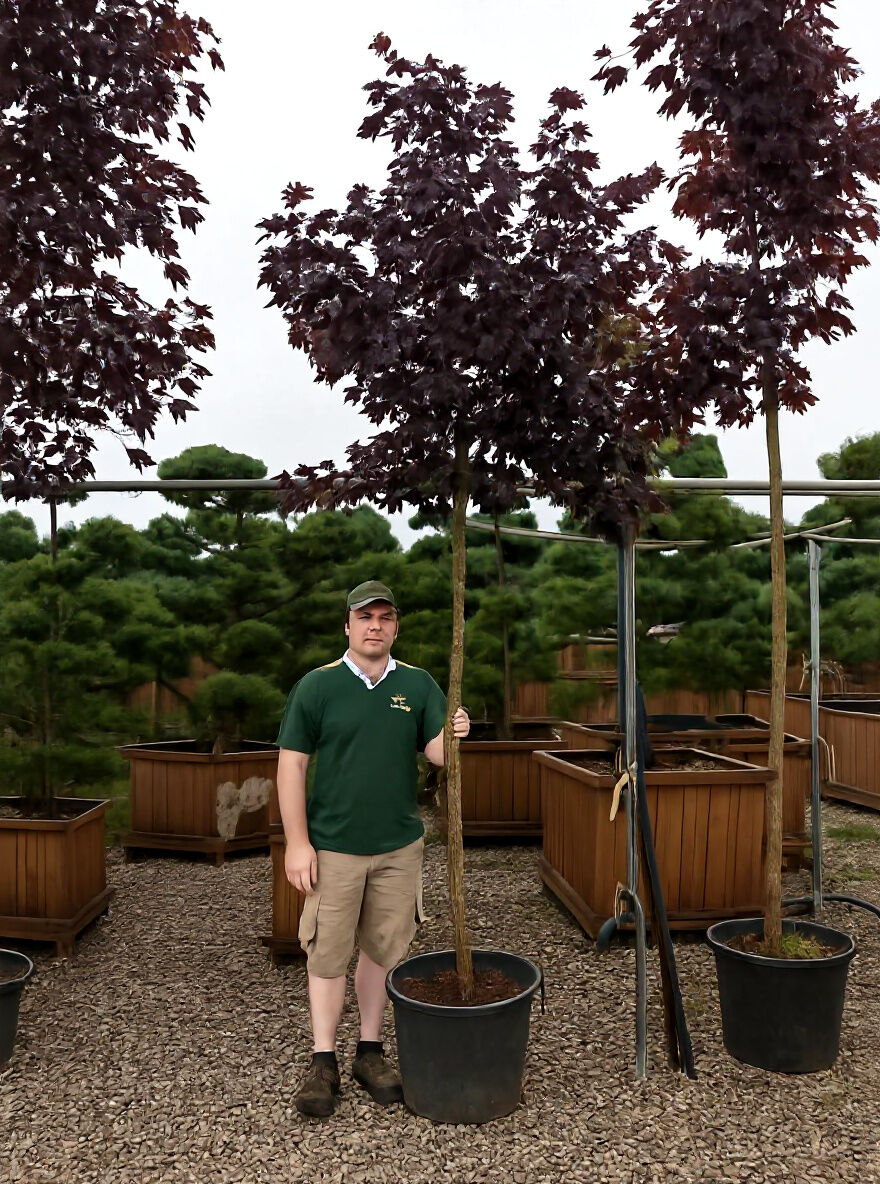 hervorragendem Zustand geliefert: gut durchwurzelt, sauber aufgebaut und mit einem satten, gesunden Rot im Laub. Er ist schnell angewachsen und zeigt eine erstaunlich stabile, gleichmäßige Krone. Die Farbe bleibt den ganzen Sommer über intensiv und macht den Baum zu einem echten Blickfang.