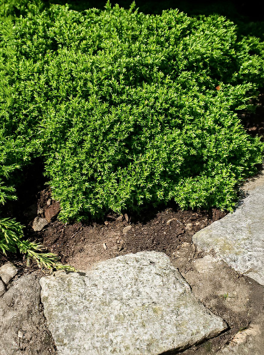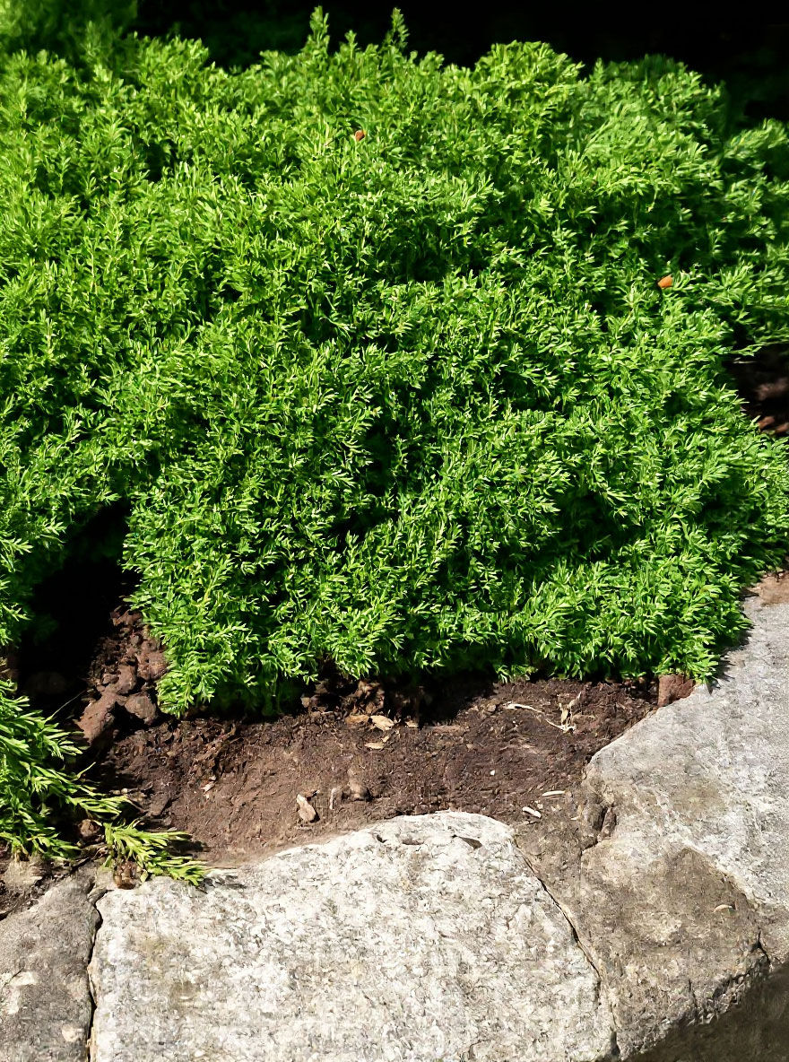 Der grüne Kriech-Wacholder ‘Green Carpet’ macht genau das, was sein Name verspricht. Er bleibt niedrig, breitet sich gleichmäßig aus und bildet einen dichten, ruhigen Teppich. Kein Drama, kein Pflegeaufwand – einfach eine Pflanze, die funktioniert, besonders dort, wo andere aufgeben.