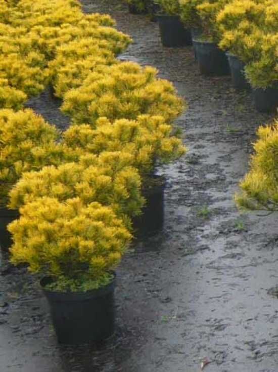 Eigenschaften: | Die Pinus mugo 'Carsten's Wintergold' (Zwerg-Kiefer) zeigt sich sehr winterhart und ebenfalls extrem robust. Natürlich bietet die außergewöhnliche Winterfärbung ansprechende Möglichkeiten der Akzentuierung. Diese Zwerg-Kiefer passt sowohl als Gruppe als auch einzeln in jeden Garten.. |