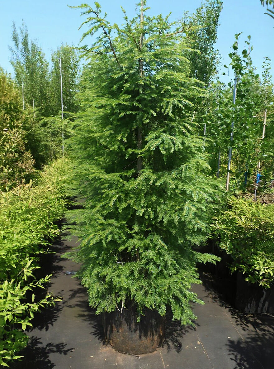 Wuchs: Offener, pyramidenartiger Wuchsform mit einer eher locker angeordneten, leicht hängenden Krone.15 bis 20 m hoch und etwa 6 bis 7 m breit, Jahreszuwachs bis zu 30 cm in die Höhe und ca. 15 cm in die Breite, kann sowohl eintriebig als auch mehrtriebig sein