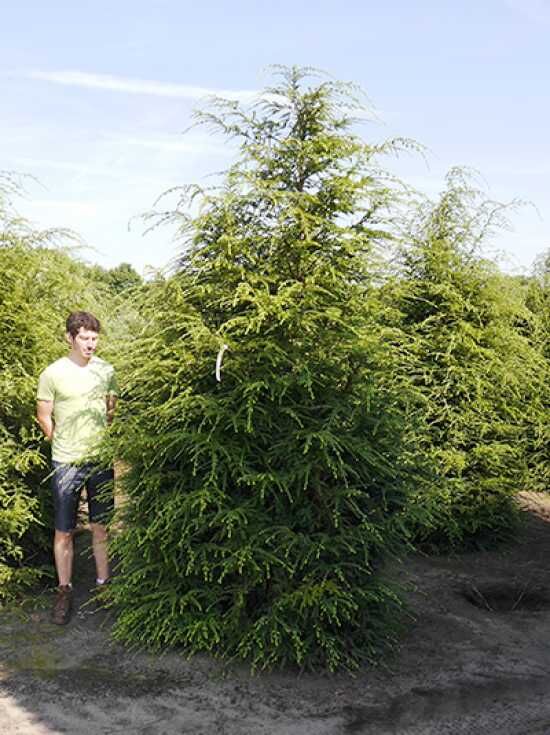 Wuchs: Offener, pyramidenartiger Wuchsform mit einer eher locker angeordneten, leicht hängenden Krone.15 bis 20 m hoch und etwa 6 bis 7 m breit, Jahreszuwachs bis zu 30 cm in die Höhe und ca. 15 cm in die Breite, kann sowohl eintriebig als auch mehrtriebig sein