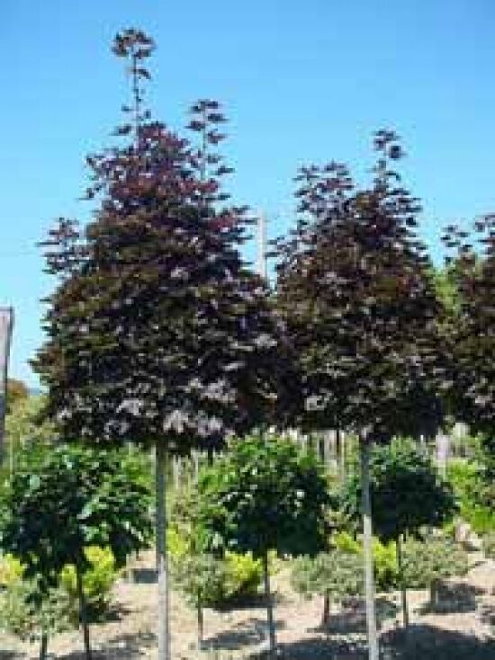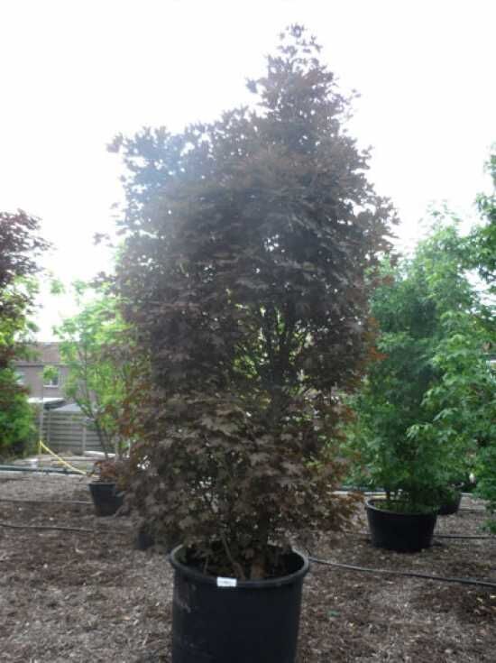 Wie der Name Säulen-Blutahorn bereits vermuten lässt, bildet sich die Krone schmal und aufrecht, sodass diese an die Form einer Säule erinnern lässt. Die verzweigte Krone erscheint besonders dichtbuschig und ermöglicht es dem Gärtner durch einen gezielten Rückschnitt eine formschöne Kugel zu erstellen.