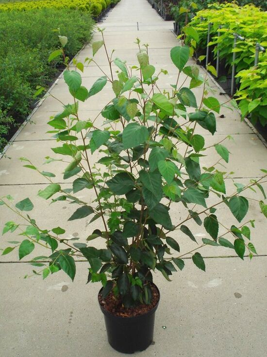 | Blatt: | Sommergrün, Grob gezähnt, herzförmig, dunkelgrün, Herbstfarbe goldgelb, 5 bis 7 cm lang. |