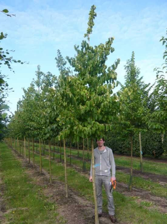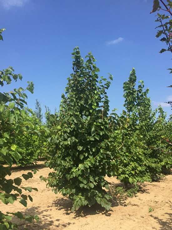 Die sogenannte Baum-Hasel ist ein attraktiver Zierbaum, der vorwiegend im Sommer mit seiner Optik und einem robusten Charakter verwöhnt. Die formschöne Wuchsweise lässt die Züchtung elegant erscheinen und verschafft ihr eine aristokratische Wirkung. Sie zeigt sich mit einem attraktiven Blatt und einer traumhaften Herbstfärbung. Auch die markante Frucht hat großen Zierwert und lässt die Baum-Hasel insgesamt zu einem ganzjährigen Highlight werden. Der prachtvolle Baum benötigt Platz zum Entfalten und zeigt sich dann mit einer glamourösen Optik. Seine Krone bleibt schlank, sodass diese Hasel hervorragend als Straßen- und Alleebaum oder auch im innerstädtischen Bereich verwendet werden kann. Die große Robustheit bezüglich Dürre und Überschwemmung verschafft der Baum-Hasel große Bewunderung und macht sie zu einem beliebten Solitärbaum, der zunehmend unsere Gärten schmücken wird. Sie ist ein Zukunftsbaum und wird im Verlauf des Klimawandels immer größere Beliebtheit erfahren.