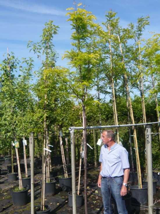 Name Botanisch: Gleditsia triacanthos 'Sunburst'.